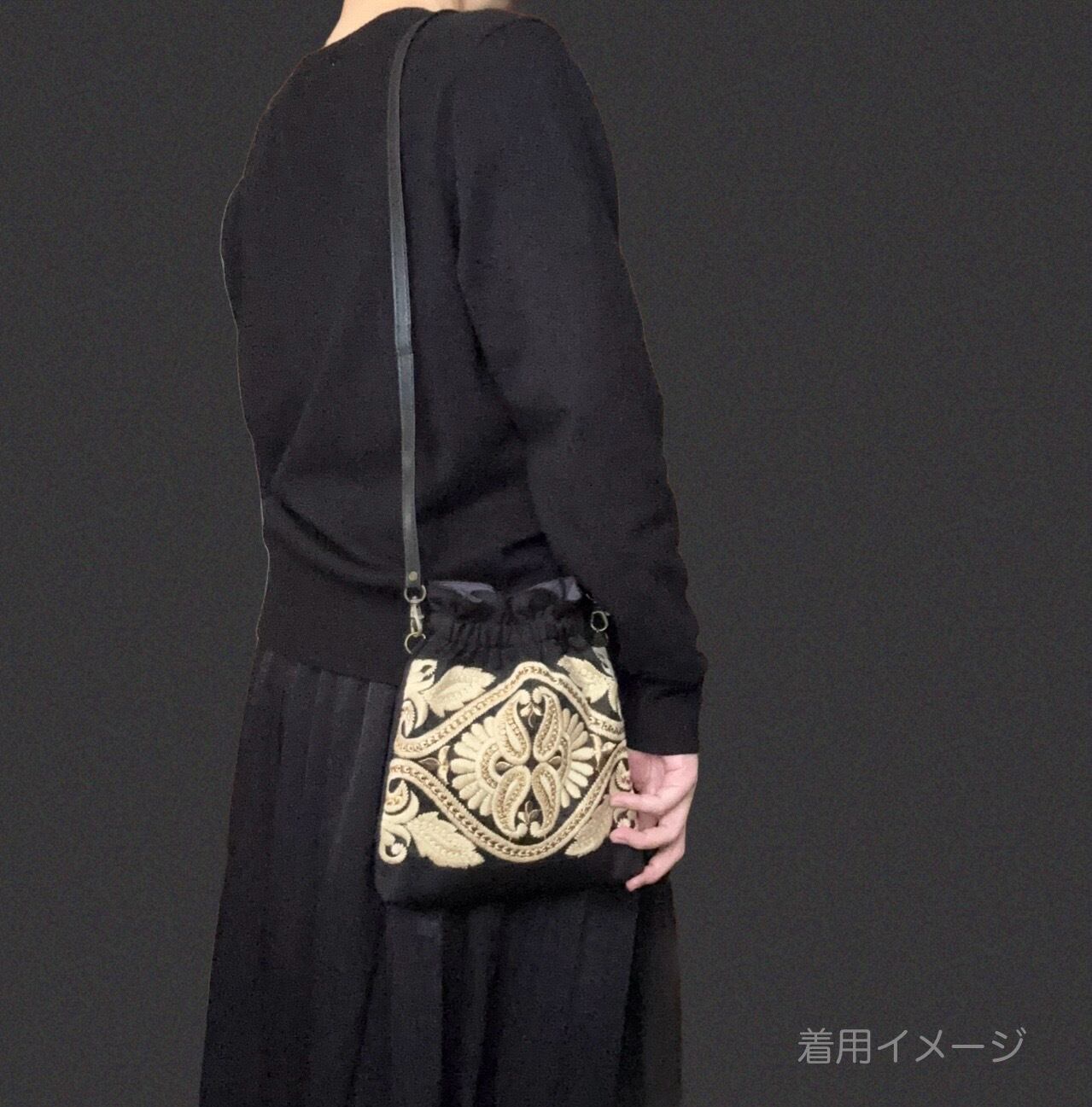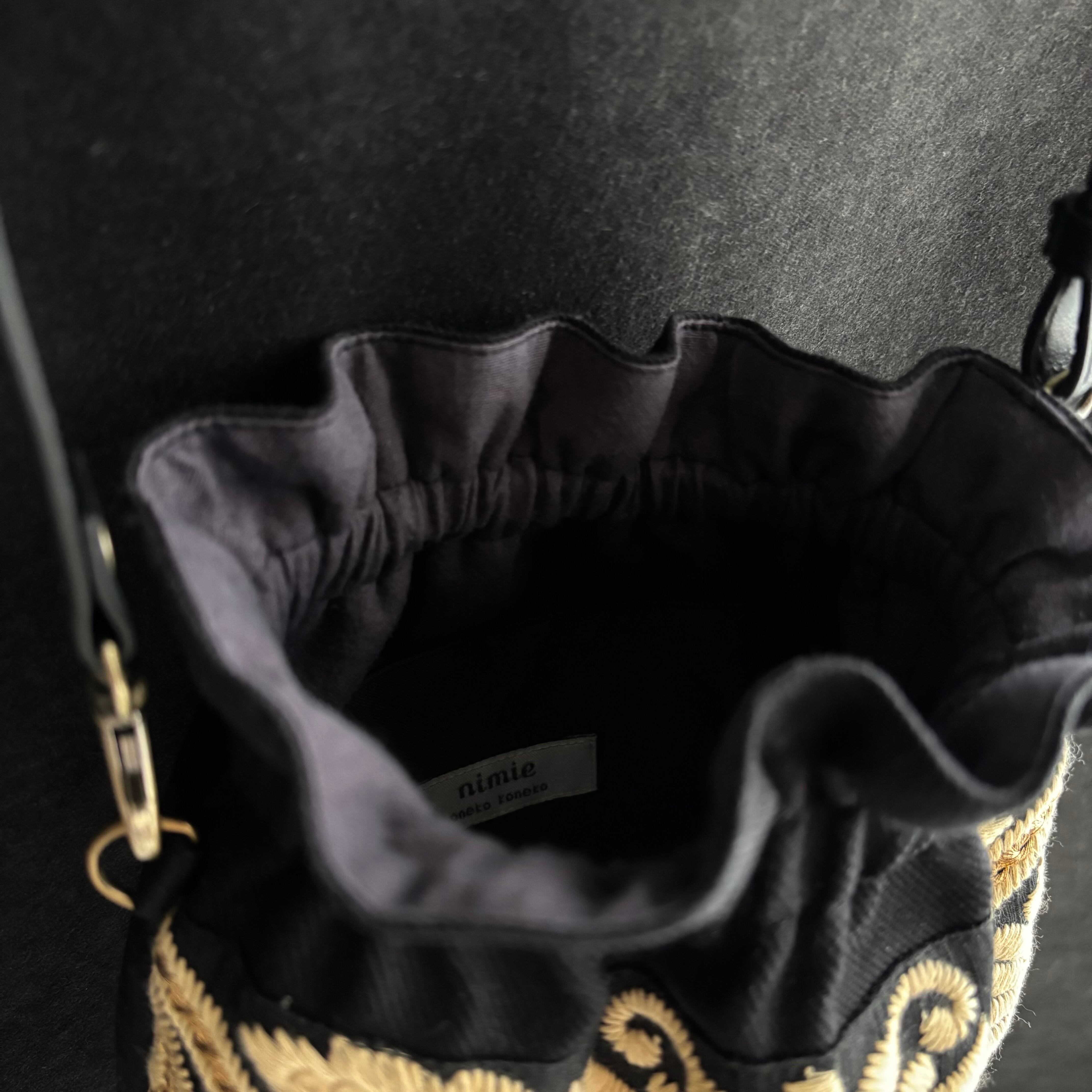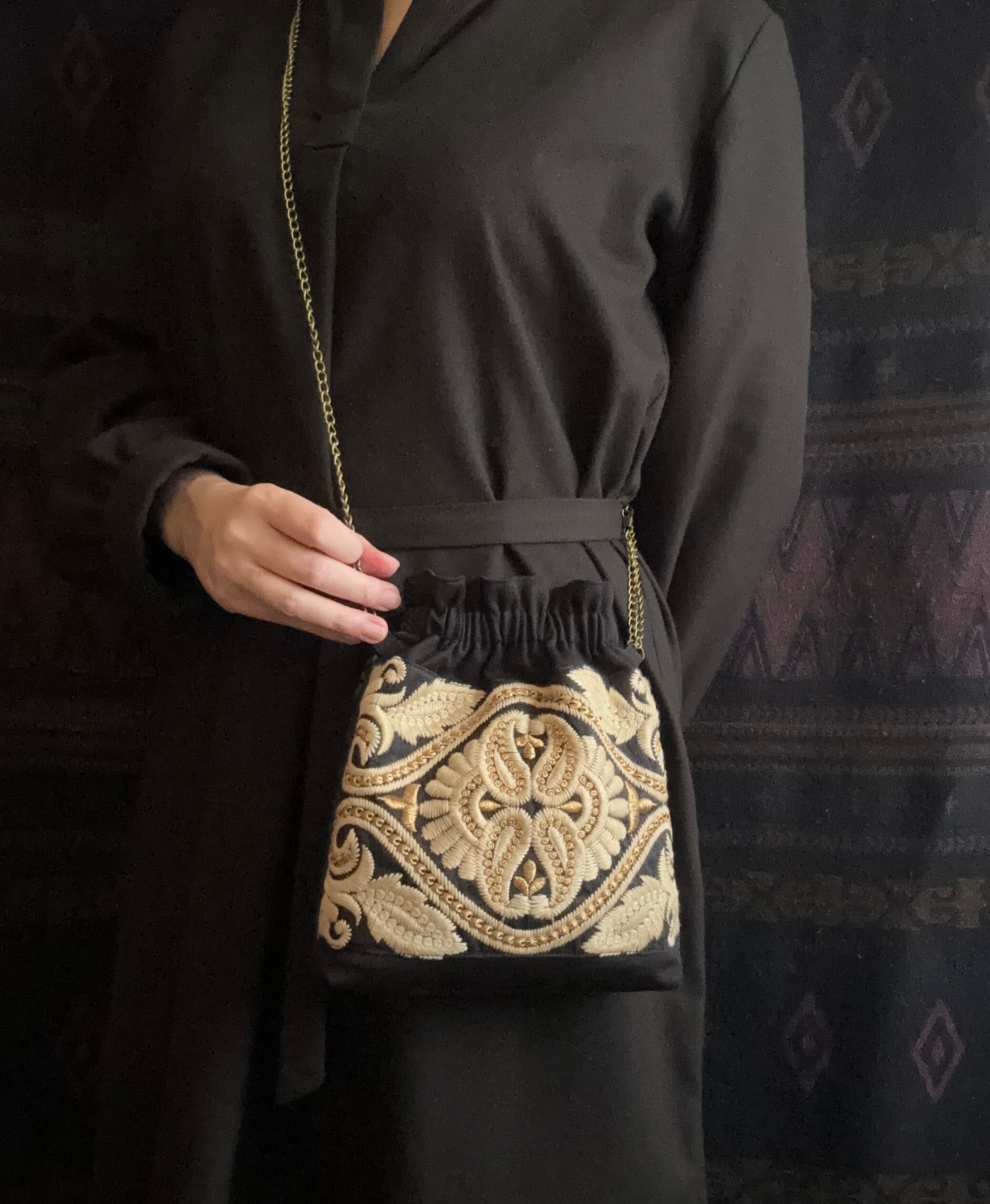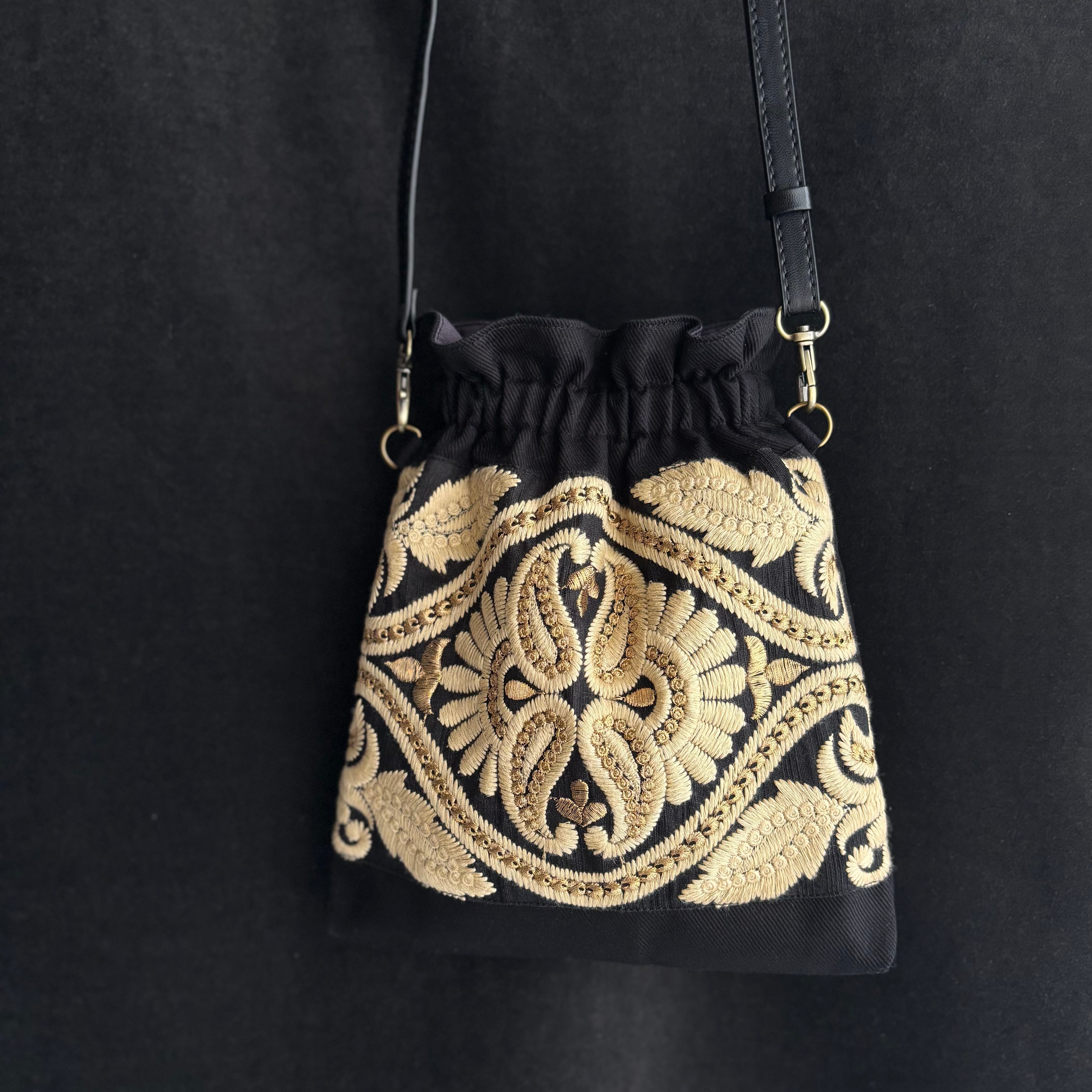 インド刺繍の巾着風ショルダーポーチ 【 A柄 】