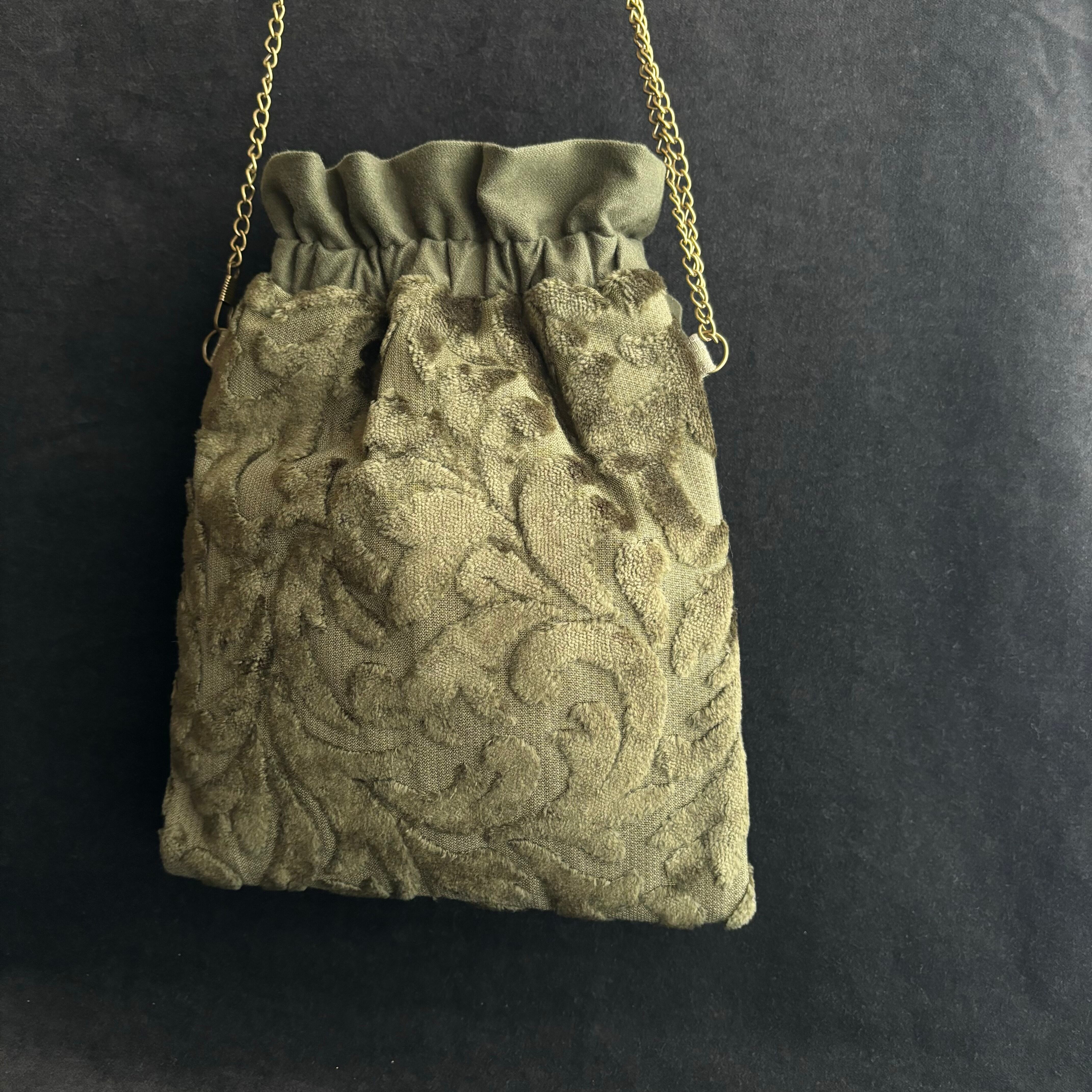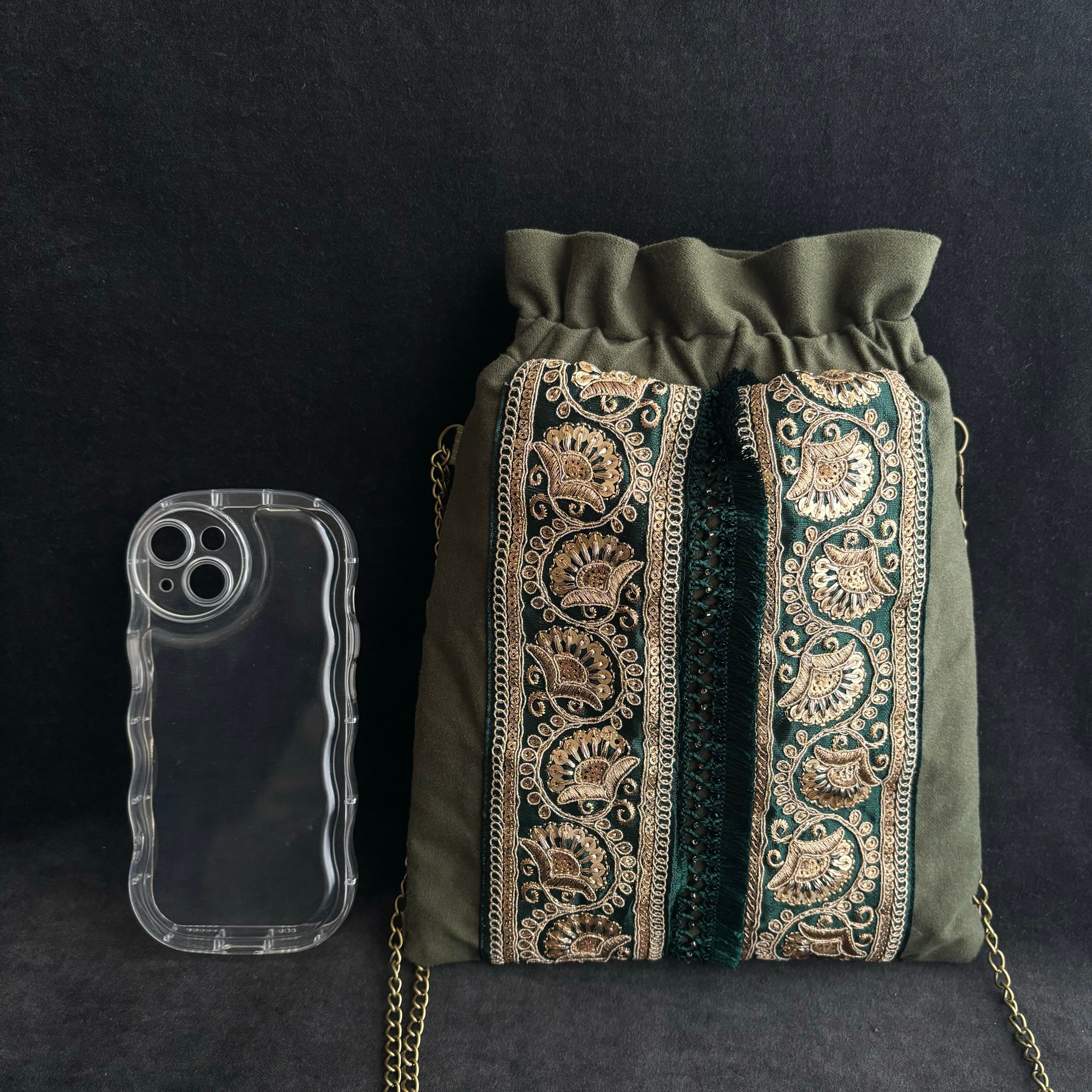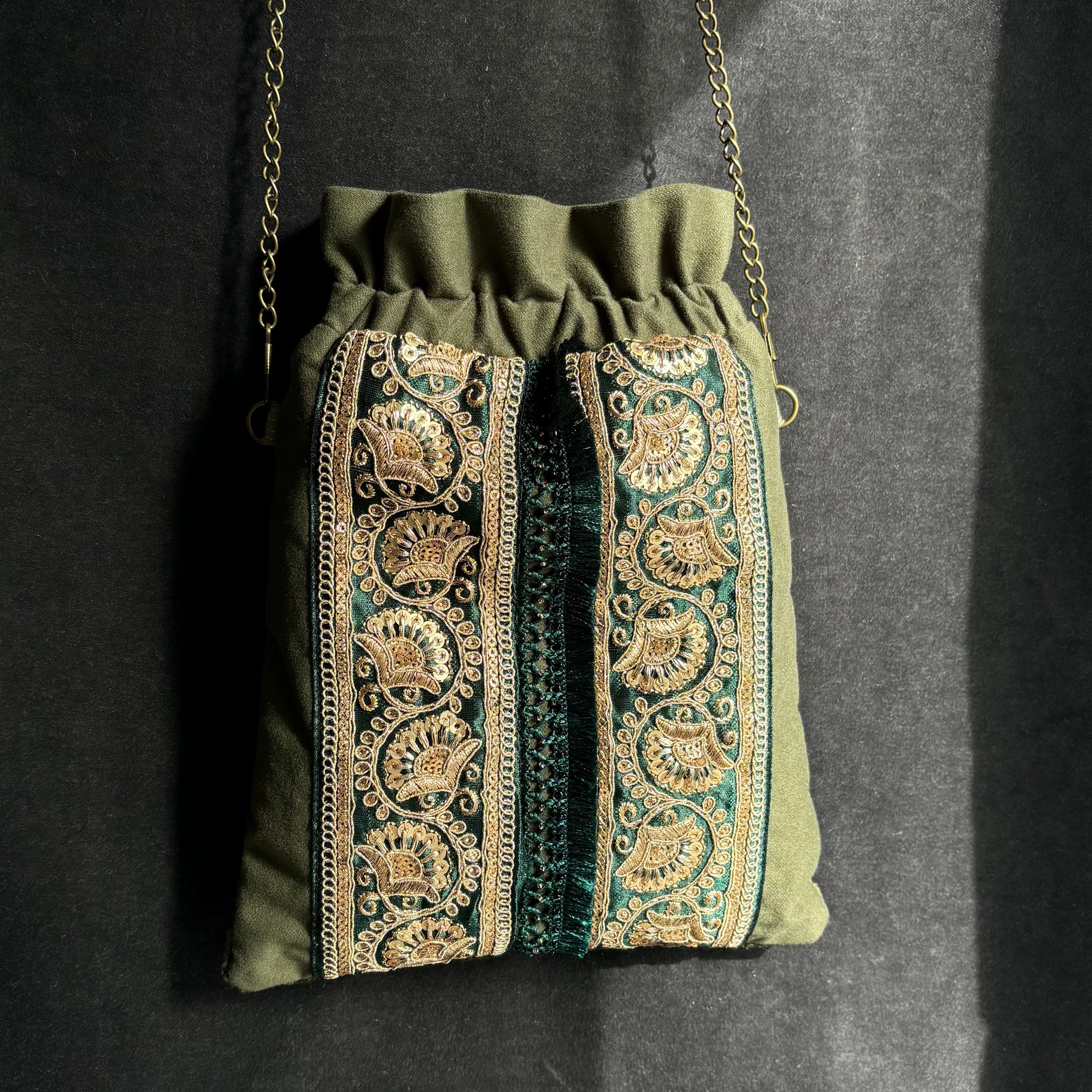 オリエンタルなグリーンのインド刺繍やフリンジを装飾